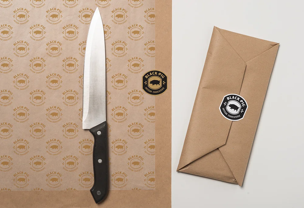 Logo/ ID, packaging and poster design for Black Pig; Artisan Charcuterie by Chef Marco Nico.