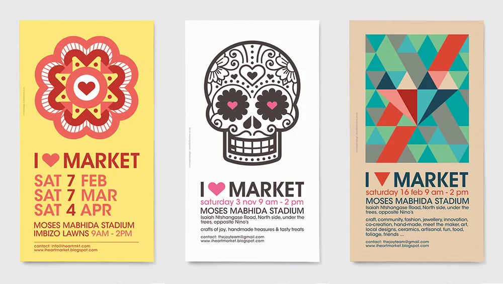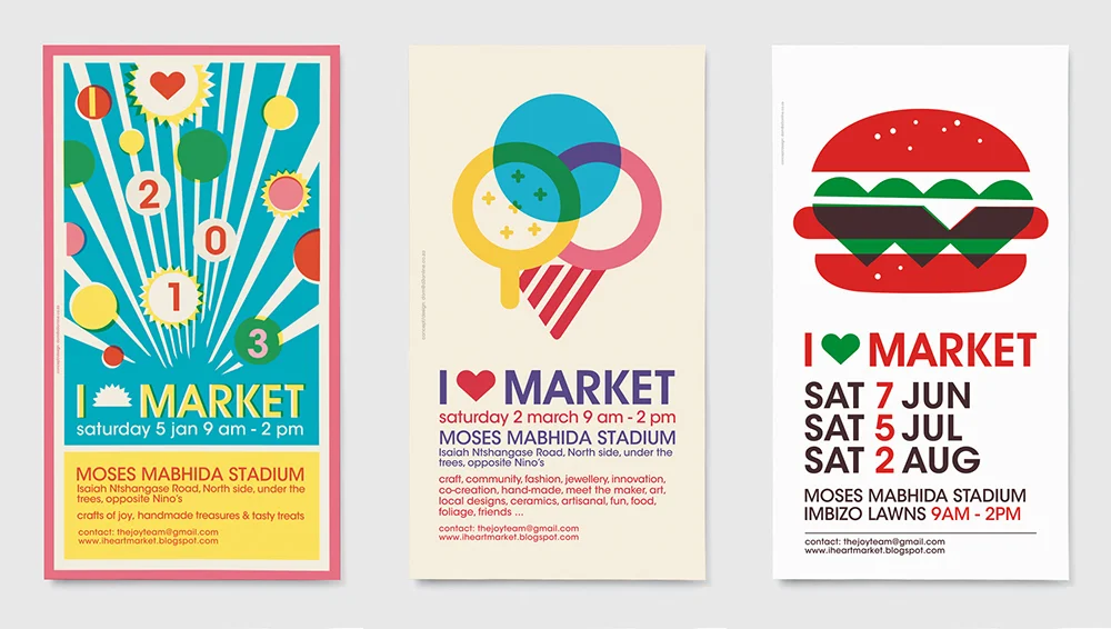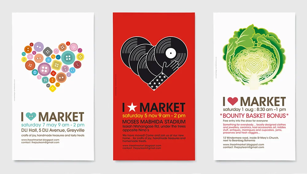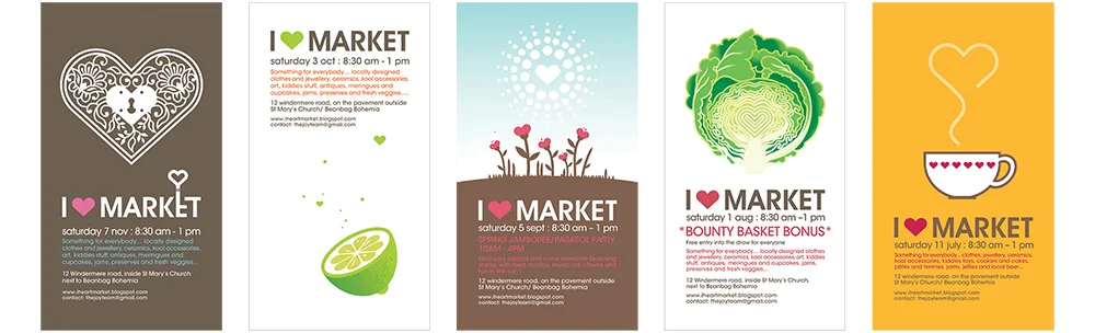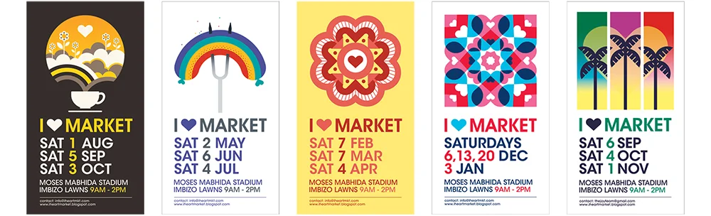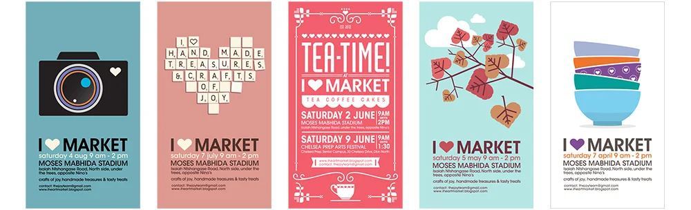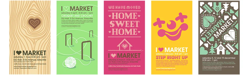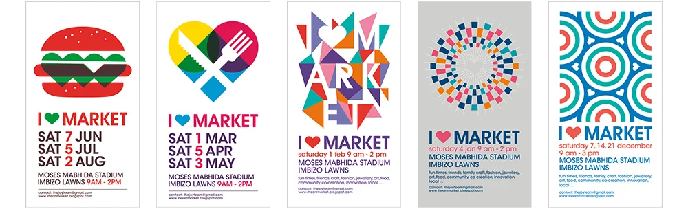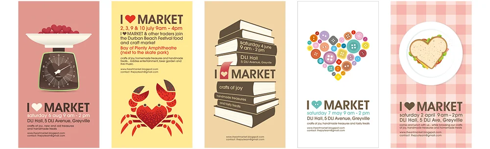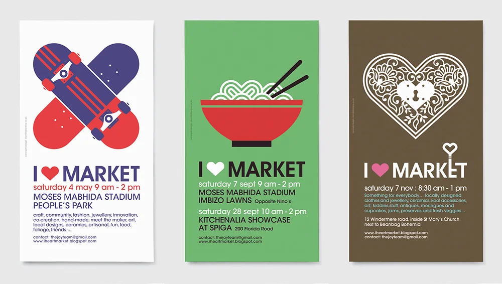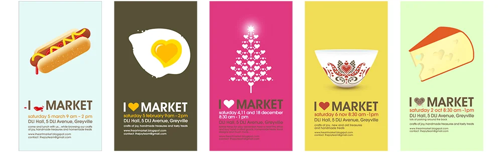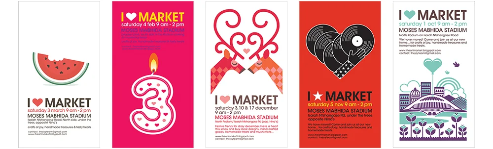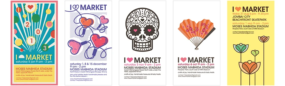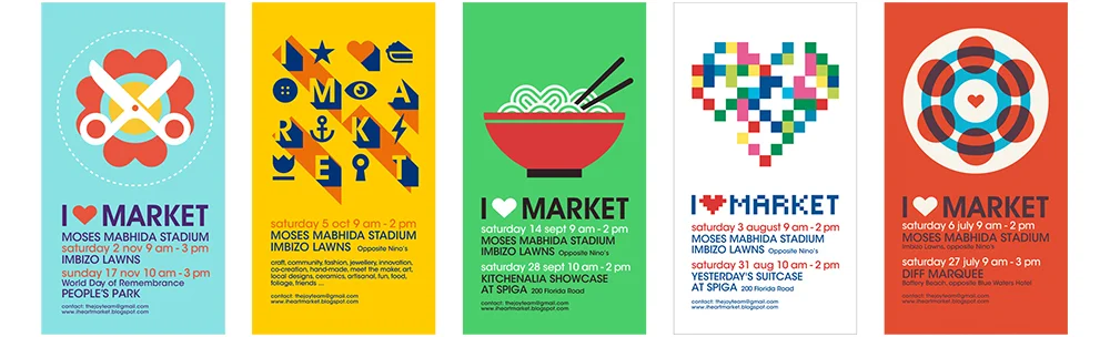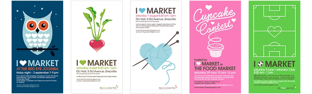 Logo/ ID and poster series for Durban's I ♥ Market, which provides a platform once a month for local foodies and designers to showcase their products.