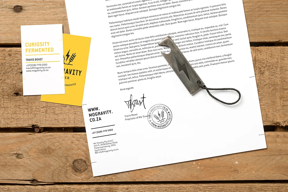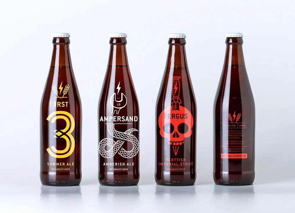 Logo/ ID and packaging design for Mo' Gravity Brewery.
